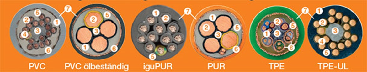 Jacket variants chainflex®: PVC, PUR, TPE